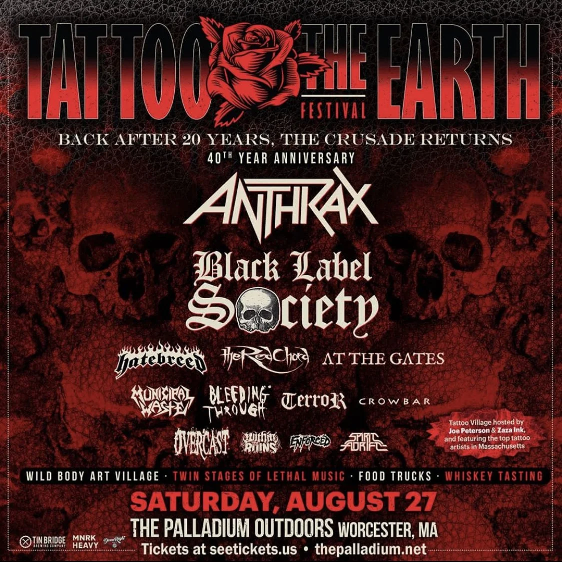 Tattoo the Earth Festival is BACK on August 27 in Worcester, MA with Overcast, Anthrax, BLS, Hatebreed, Bleeding Through, Terror and more! Get tickets and info at TattooTheEarthFestival.com